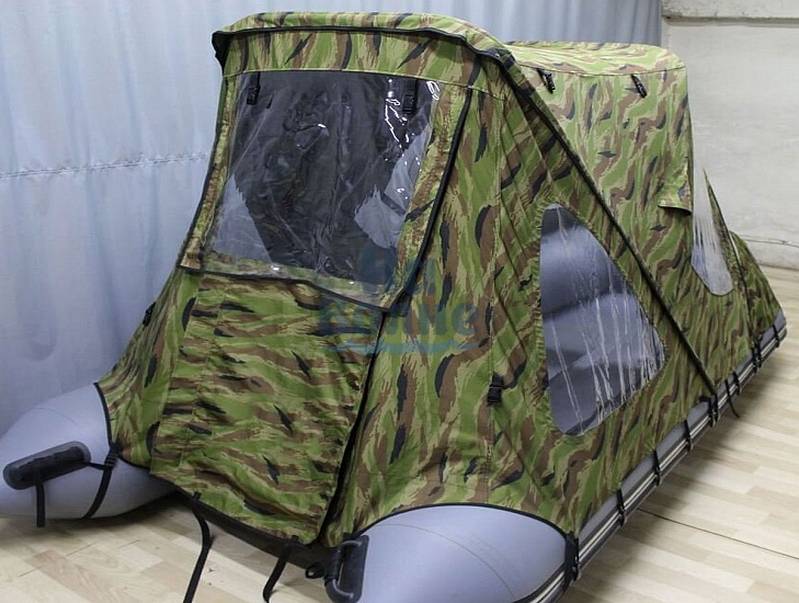 Легкость сборки: конструкция позволяет быстро и легко собирать и разбирать тент, даже находясь в лодке.
